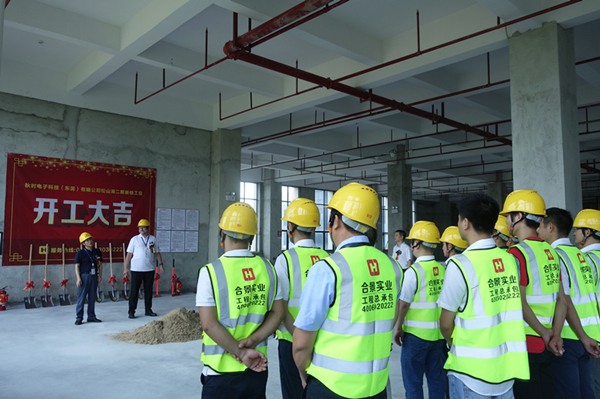 秋高氣爽,陽光明媚,2018年9月13日10點08分,秋時電子科技(東莞)有限公司二期廠房裝修綜合工程項目開工儀式正式開始。