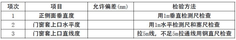 4、門窗套安裝的允許偏差和檢驗方法如下